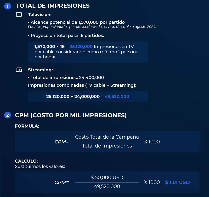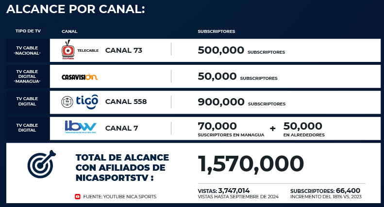 Nuestro mayor diferenciador es el método de cálculo en base a una audiencia activa con datos de interacción y visualización reales de NicaSports a través de su difusión digital. A diferencia de otros métodos de cálculo, nuestro estudio no es basado en ratings ni proyecciones, sino en una radiografía real de la capacidad de conversión y captación de las visualizaciones del 2024.