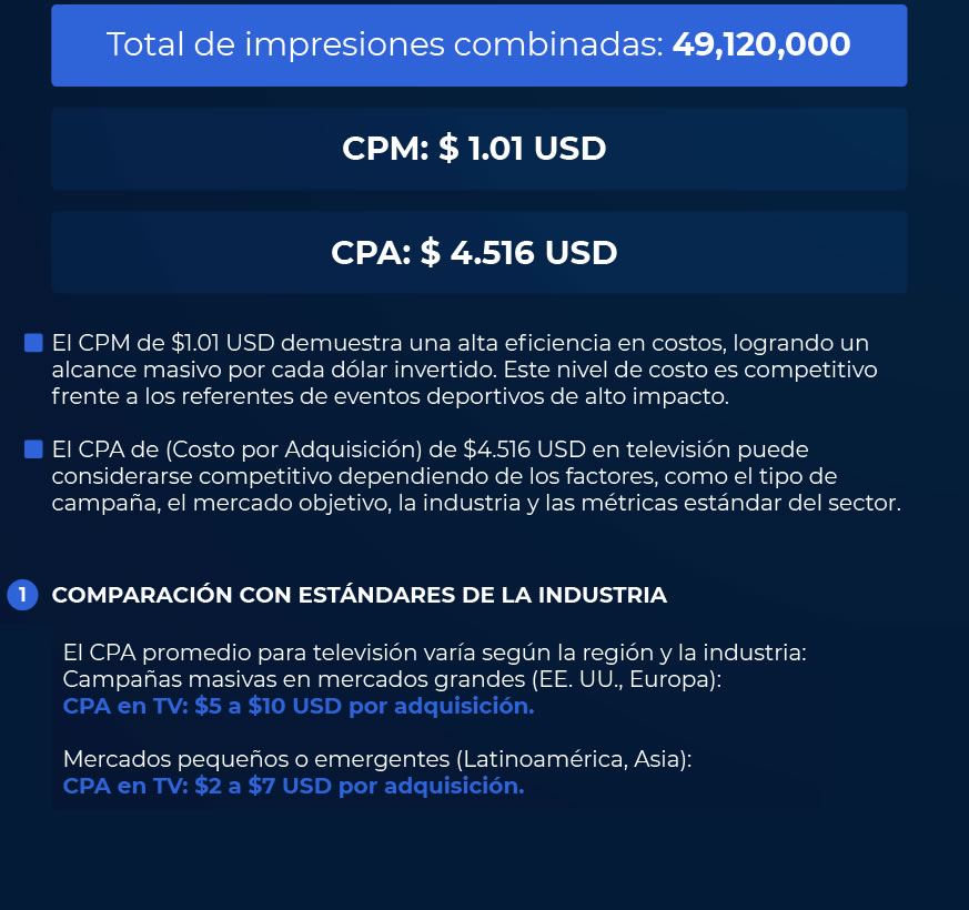 En Apollo Sports Business Group, hemos diseñado esta propuesta publicitaria con un enfoque profesional basado en un riguroso análisis de mercado para ofrecer una solución sólida y estratégica a las agencias de medios y marcas corporativas. Nuestro objetivo es respaldar sus decisiones de inversión en medios con métricas confiables y un enfoque transparente, apoyados por estudios independientes y consensuados con agencias de medios lideres y especializadas en planificación y tarificación de medios.